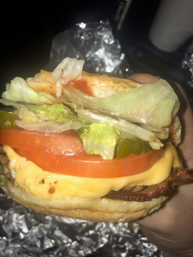 Flash forward to Wednesday night at about 6:30, and I had one bacon cheeseburger, with lettuce, tomato, pickles and ketchup in front of me with a side of cajun fries. P.s. If you go to Five Guys and DON’T get the cajun fries, you are a monster… just saying. Anyways, I went in for that first bite and it was everything I wanted it to be, juicy, saucy, crunchy, cheesy… needless to say, I was one happy foodie. Then of course once I finished my burger, I had an outrageous amount of fries to get through, because Five Guys has a generous hand when it comes to servings. It was so delicious, and I can’t wait until about a year from now when I have the urge to burger again!